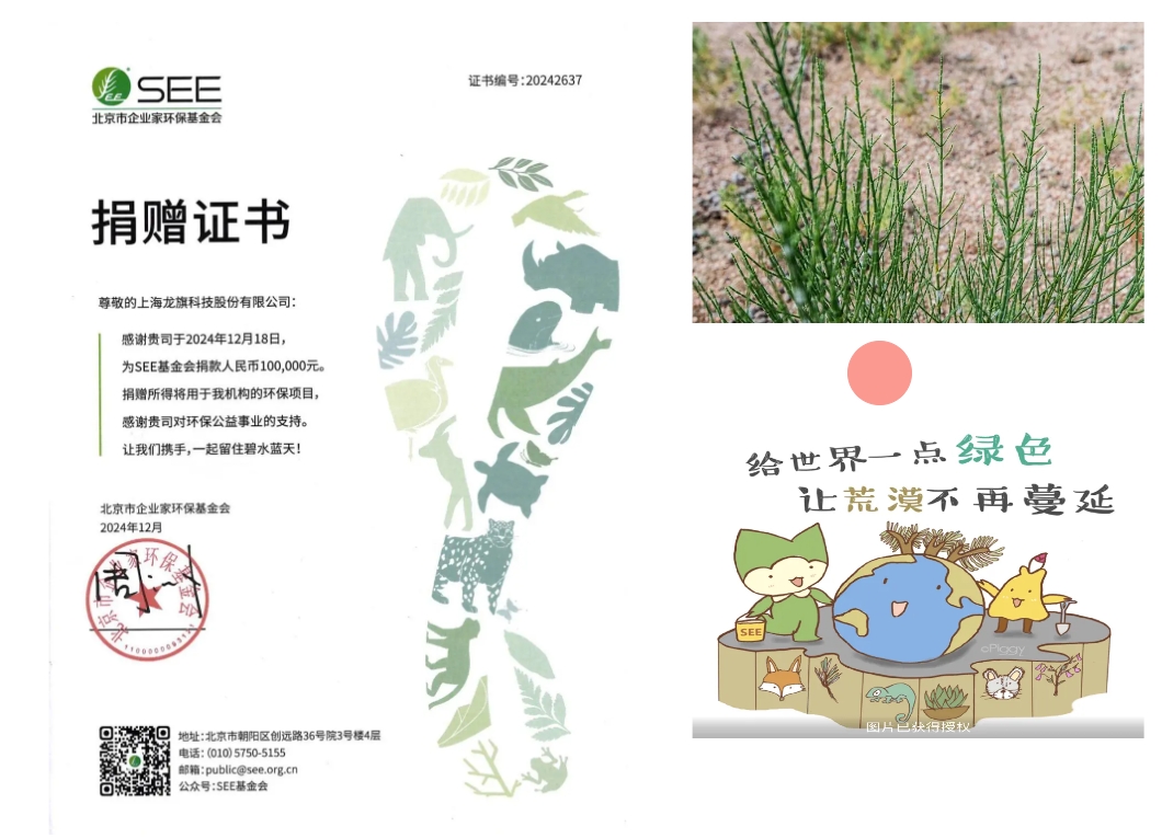 在可持續發展方向,龍旗向北京企業家環保基金會捐贈了一萬顆梭梭樹組成的企業公益林,以對抗沙漠化,助力西北地區重點沙化區恢復生態系統。