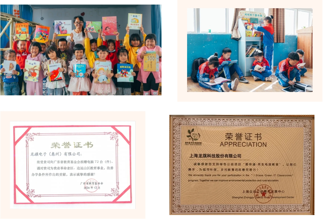 在幫助困難群體方面,龍旗與江西省紅十字基金會合作,提供資金救助,為那些飽受易患病、兒童疾病以及重特大疾病困擾的困難群體帶去溫暖與希望。同時,在教育振興上,龍旗還與擔當者教育基金會合作,為江西宜春市三所小學的10個班級捐建圖書角捐建圖書角,開設直播課,拓寬鄉村兒童視野,并向上海眾谷公益和廣東省教育基金會捐贈電腦,支持偏遠地區的教學質量和電腦普及,努力縮小數字鴻溝。
