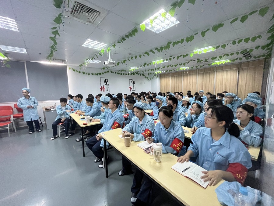 烈日下的一周文化集訓,讓2023屆的小太陽們磨煉了意志,更理解了龍旗文化。作為一名合格的龍旗人,對業務與產品的了解同樣不可或缺。文化集訓后,同學們換上工服,戴上工帽,深入惠州與南昌基地,通過上手實操見證了我們的產品從理念到實物的全流程,更收獲了對制造與產線全新的認知,為未來走向各自崗位打下堅實的一線實踐基礎。