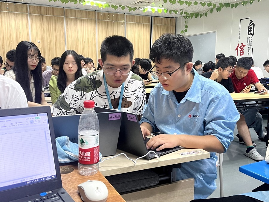 對生產流程熟悉后,小太陽們便開始跟著工程導師進行為期一周的學習。同學們分為不同的小組,學習工藝流程及崗位相關知識。在每天的理論課程結束后,導師還會帶領小太陽們去往產線,通過實際操作與講解相結合,幫助大家對工藝流程和異常處理有更直觀的理解,也為同學們返崗后如何處理項目問題做出了現場演示。
